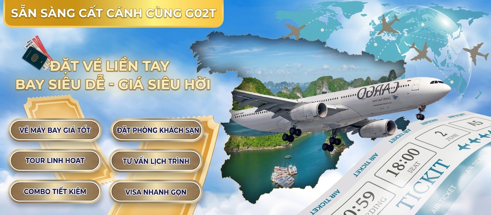 GO2T là công ty chuyên cung cấp vé máy bay nội địa, vé máy bay quốc tế với giá ưu đãi. Đặt vé máy bay online dễ dàng, nhanh chóng và săn vé máy bay giá rẻ mỗi ngày.